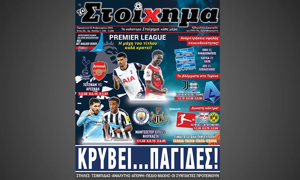 Απαιτητικό κρίνεται το... μενού στην 27η αγωνιστική της Πρέμιερ Λιγκ. Ξεχωρίζει βέβαια η “μάχη” του Λονδίνου καθώς η Τότεναμ υποδέχεται την πρωτοπόρο Αρσεναλ, ενώ η 2η Μάντσεστερ Σίτι κοντράρεται με την επικίνδυνη Νιουκάστλ. Η Λίβερπουλ αγωνίζεται στο Νότιγχαμ ενώ εκτός έδρας αποστολή έχει και η Μάντσεστερ Γιουνάιτεντ που διασταυρώνει τα ξίφη της με την Εβερτον. “Πονηρό” κρίνεται το πρόγραμμα και στη Μπουντεσλίγκα όπου δεσπόζει η εξόρμηση της δεύτερης Ντόρτμουντ στη Λειψία, ενώ η πρωτοπόρος Μπάγερν φιλοξενεί την Αϊντραχτ.
